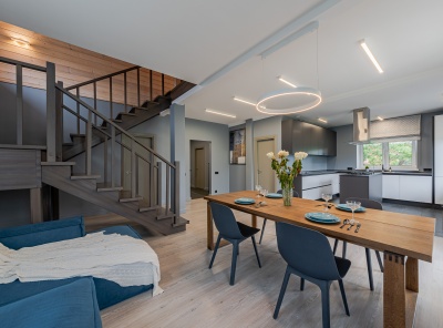 Аренда нового загородного дома площадью 220 кв.м. Новорижское шоссе, 23 км от МКАД. Коттеджный поселок Новорижский. Дом построен в стиле Швейцарского шале на участке 15 соток с выходом на прогулочную зону и детскую площадку. Уютный и теплый, для комфортной жизни семьи из 4-5 человек. Вся инфраструктура поселка в пешей доступности. Навес на 2 м/м. Все коммуникации центральные. Планировка:1 этаж - кухня-столовая-гостиная с выходом на крытую веранду, спальня, с/у, котельная,2 этаж - спальня с гардеробной, 2 спальни, с/у.