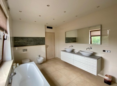 Аренда загородного дома площадью 420 кв.м. Коттеджный поселок Княжье Озеро. Новорижское шоссе, 21 км от МКАД. Коттедж построен в 2 этажа под ключ. Полностью готов к проживанию. Просторный дом, подходит для большой семьи, свежий ремонт. Усаток 18 соток в тихом месте поселка.