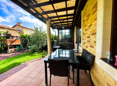 Аренда загородного дома общей площадью 582 кв.м. Коттеджный посёлок Павлово. Новорижское шоссе, 14 км от МКАД. Дом построен из кирпича в 3 уровня под ключ, полностью меблирован и готов к проживанию. Участок 25 соток с ландшафтным дизайном и крытым бассейном с подогревом. Гараж со вторым этажом(спальня и кухня для персонала) крытый паркинг на 2 м/м.