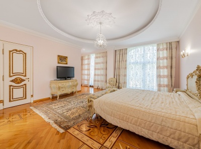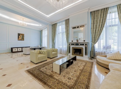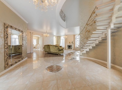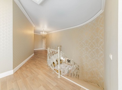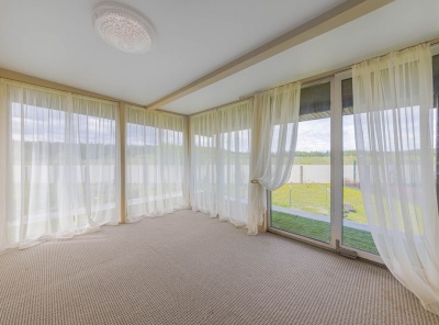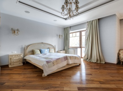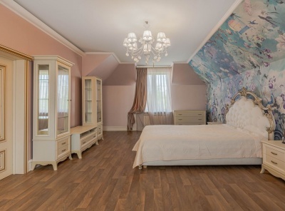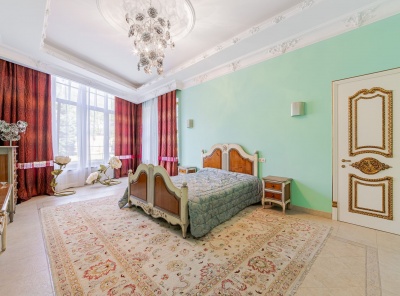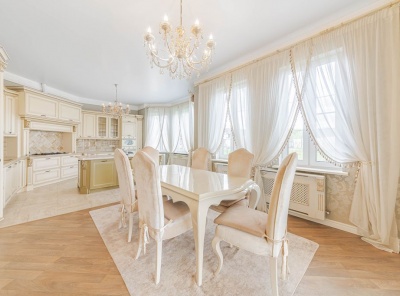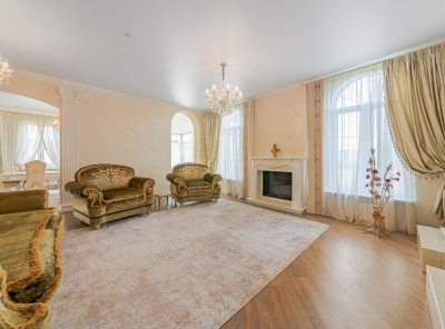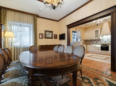 Аренда загородного дома площадью 400 кв.м. Коттеджный поселок Княжье Озеро. Новорижское шоссе 24 км от МКАД. Коттедж построен по каркасной технологии в 2 этажа и расположен в тихой части поселка у парка. Интерьер выполнен в классическом стиле. Участок 20 соток уложен газон, высажены плодовые деревья.