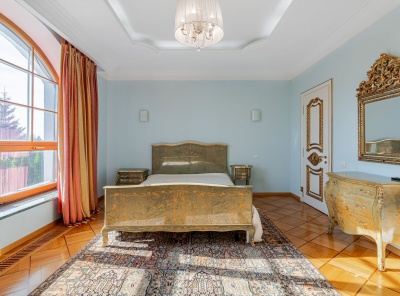 Аренда загородного дома общей площадью 450 кв.м. Коттеджный поселок Монтевиль. Новорижское шоссе, 24 км от МКАД. Коттедж построен в 2 этажа. Под ключ с мебелью. Участок 17 соток.Планировка 1 этаж - холл, кухня, столовая, гостиная с выходом на веранду, спальня, гардеробная, кабинет - библиотека, с/у,2 этаж - 4 спальни, 2 гардеробные, 2 с/у.