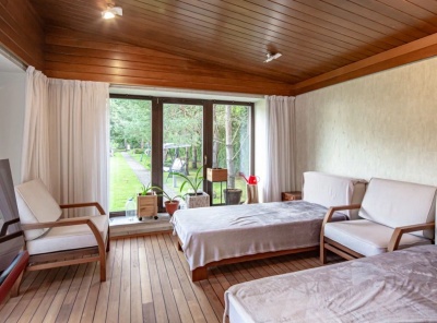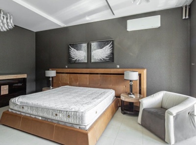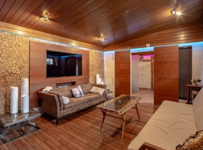 Аренда загородного дома общей площадью 750 кв.м. Коттеджный поселок Миллениум Парк. Новорижское шоссе, 19 км от МКАД. Дом построен в 2 этажа. Под ключ с мебелью. Ремонт в стиле арт-деко. Рядом с основным домом расположен гостевой дом площадью 185 кв.м с профессиональной спа-зоной. Здесь предусмотрена дровяная баня, купель, горячий чано и зона отдыха с шезлонгами. Кроме этого, есть гостиная с большим диваном и телевизором, кухней, большой крытой верандой и барбекю-зоной.