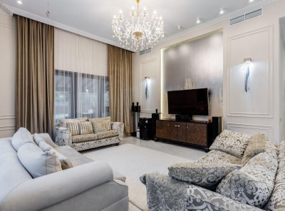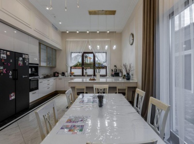 Аренда загородного дома площадью 450 кв.м. Коттеджный поселок Гринфилд. Новорижское шоссе, 24 км от МКАД. Коттедж построен в 2 этажа. Под ключ с мебелью. Дом полностью готов к проживанию. В отделке использовались качественные, натуральные материалы (мрамор, дерево, стекло). В каждой комнате дизайнерская мебель, зеркала, картины, живые цветы и различные стильные предметы интерьера.