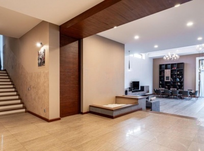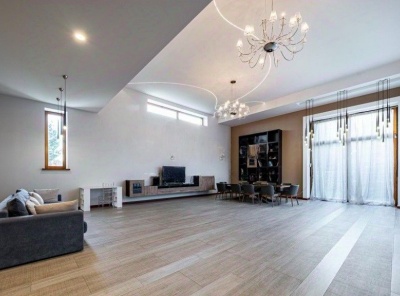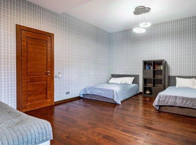 Продажа современного загородного дома площадью 650 кв.м. Новорижское шоссе, 18 км от МКАД. Коттеджный поселок Кристалл Истра. Дом построен в 2 этажа в современном стиле. Полностью меблирован и оснащен всей необходимой техникой от ведущих производителей. Просторный участок 40 соток. Имеется гараж на 2 м/м. Планировка:1 этаж - прихожая, холл, гардеробная, с/у, кухня-столовая, гостиная с выходом на улицу, кабинет с с/у, спортзал, прачечная, гараж,2 этаж - 4 спальни со своими с/у, гардеробными и выходами на террасу, кинотеатр.