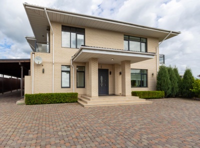 Продажа загородного дома площадью 355 кв.м. Новорижское шоссе, 23 км от МКАД. Коттеджный поселок Новорижский. Дом построен в 2 этажа, под ключ. Современный коттедж с выразительным фасадом выполнен в светлом кирпиче и сразу привлекает внимание множеством больших панорамных окон, которые придают дому легкость и наполняют его пространство естественным светом. Прямые линии, аккуратные балконы и лаконичная геометрия создают ощущение простора и гармонии.