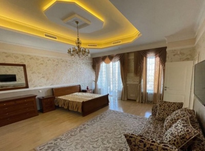 Продажа дома в элитном поселке Резиденция Рублево площадью 400 кв. м. Новорижское шоссе 1 км от МКАД. Построен в 2 этажа с премиальной дизайнерской отделкой и роскошной мебелью от ведущих мировых брендов под ключ. Благоустроенный участок 5,8 соток с ландшафтным дизайном. Во дворе также расположен гараж 2м/м. Камерный коттеджный поселок в окружении лесного массива.Планировка:1 этаж-гостиная, кухня, гостевая спальня с с/у, постирочная, гардеробная, с/у, прихожая, гараж;2 этаж-3 спальни с гардеробными и с/у, спортивная комната, терраса.