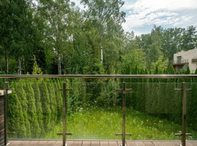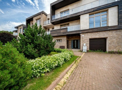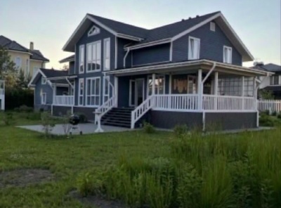 Продажа загородного дома площадью 560 кв. м. Новорижское шоссе, 25 км. от МКАД. Коттеджный поселок Онегино. Дом построен в 2 этажа. Дом имеет монолитный каркас, стены из газоблока. Фасад отделан керамогранитом двух цветов с вставками из ДКП под дерево. Крыша покрыта мембраной ПВХ, с галькой. Контурная подсветка. Панорамные большие окна и двери Shuco. Сделана ландшафтная планировка участка площадью 14 соток с дренажной системой. Смонтирована система автополива (дистанционное управление с телефона). Имеется гараж на 2 м/м.