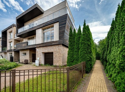 Продажа таунхауса общей площадью 323 кв.м. Новорижское шоссе, 23 км. Построен в 2 этажа под отделку. Продуманная планировка, современная стилистика и дорогостоящие материалы. Таунхаус оснащен мебелью и техникой от ведущих производителей. Угловой, прилесной участок 6 соток. Имеется гараж на 1 м/м.Планировка:1 этаж - прихожая, гардеробная, холл, гостевой с/у, кухня-столовая, кладовая, котельная, гараж на 1 авто,2 этаж - холл, спальня, ванная комната, гардеробная, домашний кинотеатр, с/у, постирочная,3 - этаж - 2 спальни, ванная комната, гардеробная, игровая.
