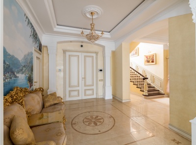 Продажа загородного дома площадью 1200 кв.м. Рублево-Успенское шоссе, 20 км от МКАД. Коттеджный поселок Николина гора. Построен в 4 уровня. Готовность под ключ. Внутренне убранство дома подчеркивает изысканность. Истинные ценители прекрасного смогут насладиться работами итальянских мастеров. Колонны особняка покрыты сусальным золотом. 4 авторских камина. Участок площадью 120 соток находится на возвышенности, с которой открывается прекрасный вид на реку.