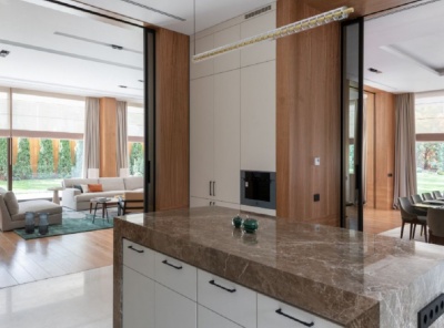 Продажа загородного дома общей площадь 1495 кв.м. Поселок Жуковка, Рублево-Успенское шоссе, 9 км от МКАД. Дом построен в 3 этажа, под ключ. Архитектура от Spaceworkers (Португалия) и интерьер от Image de Marc (Франция) создают гармоничное пространство, где современный стиль сочетается с природой и комфортом. Полы отделаны мрамором LIMRA с системой тёплого пола на теплоносителе. Стены облицованы мрамором JURA BEIGE, дополнены панелями из МДФ в шпоне эвкалипта и окрашены краской LITTLE GREENE. Мебель от BONALDO, JNL, MERIDIANI и EICHHOLTZ создают атмосферу уюта и сдержанной роскоши.