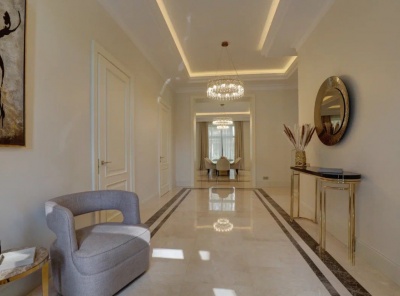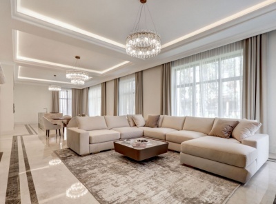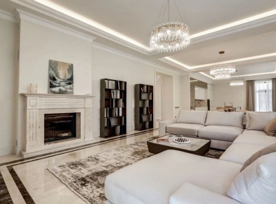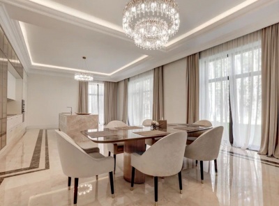 Продажа загородного дома общей площадью 773 кв.м. Новорижское шоссе, 17 км от МКАД. Коттеджный поселок Шато Соверен. Дом построен из кирпича в 3 этажа в английском стиле. Фасад облицован натуральным камнем. Участок площадью 33 сотки правильной формы. Все центральные коммуникации.