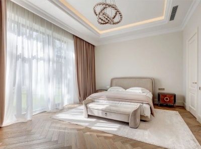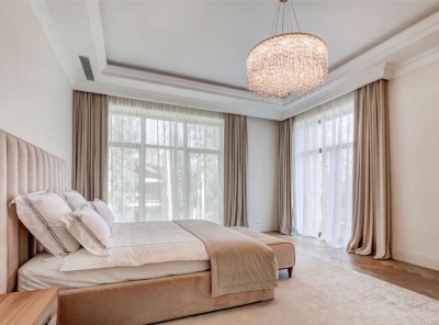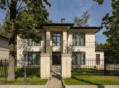 Продажа загородного дома площадью 440 кв.м. Новорижское шоссе, 9 км от МКАД. Коттеджный поселок Поздняково. Коттедж построен из кирпича в 2 этажа в стиле современной классики под ключ без мебели. Внутреняя отделка выполнена в светлых тонах, использовались только качественные материалы. Фасадная часть выполнена из натурального камня. Лесной участок 13 соток с вековыми соснами. Высажен газон, предумострена площадка для авто с возможностью построить гараж или установить навес. Удобный выезд на Нововорижское шоссе.