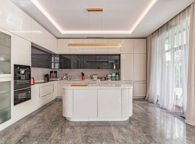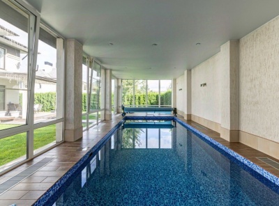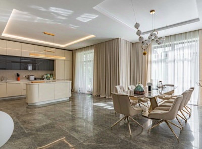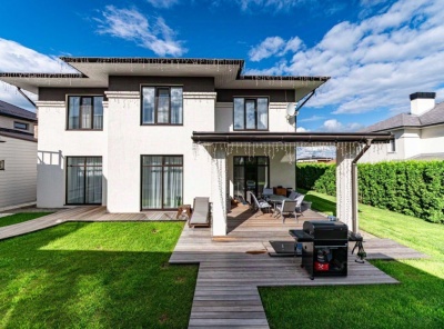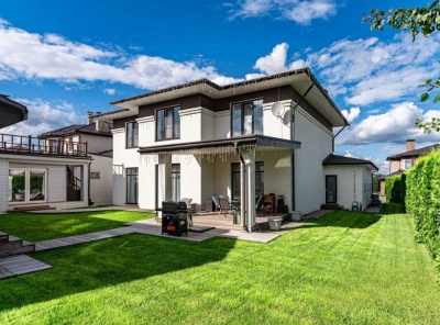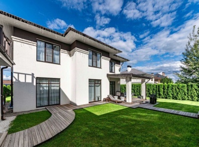 Продажа нового современного загородного дома общей площадью 1350 кв.м. Рублево-Успенское шоссе, 24 км от МКАД. Коттеджный поселок Николино. Дом построен в 2 этажа под ключ. Отделка выполнена по эксклюзивном проекту с применением только натуральных материалов. В доме 5 спален, бассейн с зоной релакса, фитнес зал с сауной, винный погреб, кабинет, огромная гостиная с выходом на балкон, а также вспомогательные и подсобные помещения. На территории также размещается гостевой дом, совмещенный с гаражом площадью 252 кв.м. Площадь участка 30 соток.