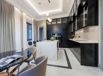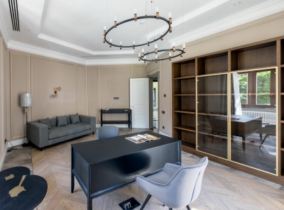Продажа загородного коттеджа площадью 750 кв.м. Коттеджный посёлок Барвиха - XXI. Рублёво-Успенское шоссе, 6 км от МКАД. Дом построен 2 этажа. Фасад дома, выполненный из натуральных материалов, таких как камень, гранит и мозаика, создает впечатляющее и элегантное первое впечатление. Эти элементы не только подчеркивают природную красоту, но и свидетельствуют о высоком уровне строительных технологий. Интерьер дома оформлен в современном стиле с тщательно подобранной мебелью и изысканными аксессуарами.