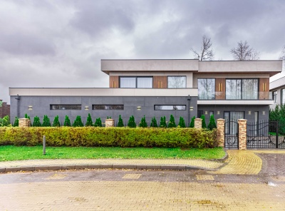 Продажа загородного дома площадью 300 кв.м. Новорижское шоссе, 23 км от МКАД. Коттеджный поселок Новорижский. Дом построен в 2 этажа в современном стиле. Продаётся новый монолитно-кирпичный дом со вторым светом, расположенный в престижном коттеджном посёлке. Дом является авторским проектом архитектора Марии Рожниковой, с уникальной архитектурой и продуманной планировкой. В гостиной установлены панорамные окна, которые являются частью стены и обеспечивают максимальное естественное освещение.