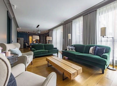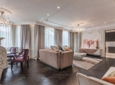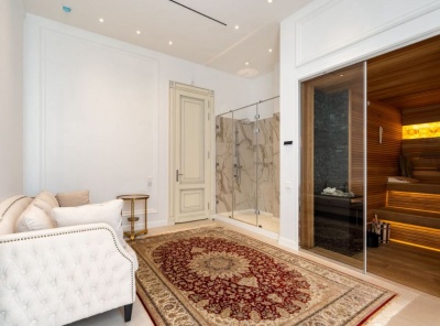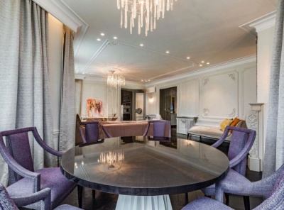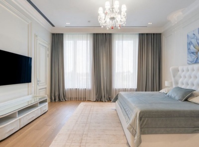 Аренда 3-комнатной квартиры площадью 215 кв.м. Метро Сокол, 5 минут пешком. Чапаевский переулок, дом 3. ЖК Триумф Палас. Квартира полностью меблирована. Ремонт выполнен в современном стиле. Имеется вся необходимая бытовая техника от ведущих производителей. Система умный дом, домашний кинотеатр, стерео-система с пультом в каждой комнате. Кондиционирование и приточно-вытяжная вентиляция, подогрев полов. Окна выходят в тихий двор. Два машиноместа входят в стоимость на одно.