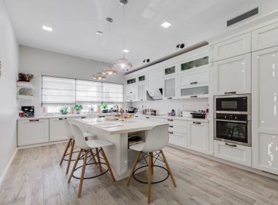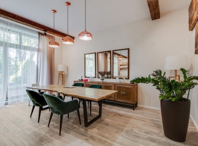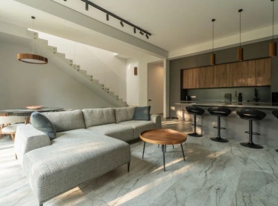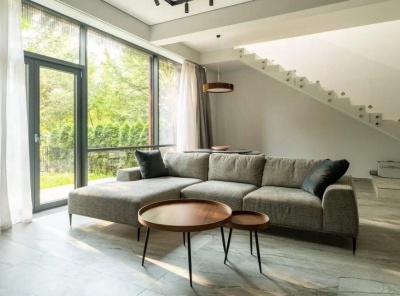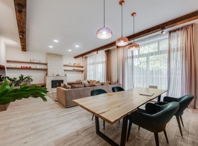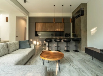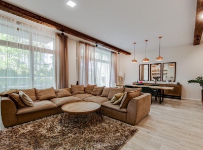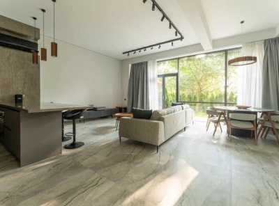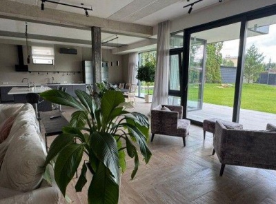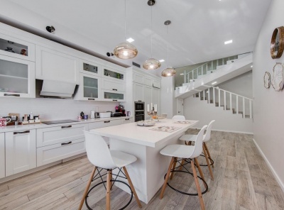 Аренда загородного таунхауса общей площадью 240 кв.м. Новорижское шоссе, 22 км от МКАД. Коттеджный поселок Футуро Парк. Дом выполнен в современном стиле с акцентом на минимализм и функциональность. Высокие потолки и большие окна создают ощущение простора и наполняют комнаты естественным светом. Внутреннее пространство продумано до мелочей: кухня-гостиная объединяет зону приготовления пищи и отдыха, оборудована современной встроенной техникой, удобным островом с барной стойкой и стильными подвесными светильниками.
