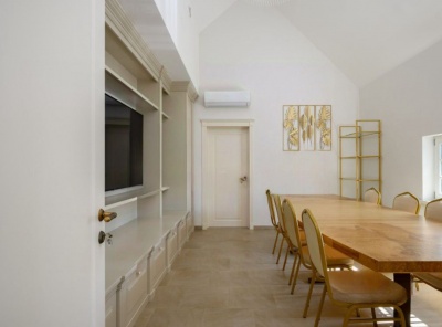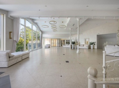 Продажа загородной резиденции общей площадью 2160 кв.м. Минское шоссе, 11 км от МКАД. Коттеджный поселок Довиль. Резиденция может использоваться как для бизнес целей (закрытый клуб/spa комплекс/клиника/гостиница и тд), так и для комфортной частной жизни для владельцев и топ-менеджеров компаний. Большой подогреваемый открытый бассейн с подсветкой для круглогодичного пользования, солевая сауна, зона для отдыха и барбекю. Большое количество комфортных и обустроенных переговорных приватного типа, большая бильярдная комната с библиотекой.