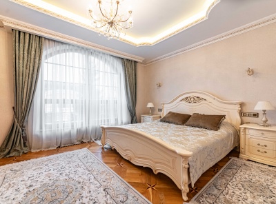 Уникальное предложение! Аренда загородной резиденции с бассейном площадью 1300 кв.м. Новорижское шоссе, 9 км от МКАД. Коттеджный поселок Никольская Слобода. Коттедж построен по индивидуальному проекту в 2 этажа. Выполнена качественная отделка в современном стиле. Полностью меблирован. Лесной участок 55 соток с баней и ландшафтом.