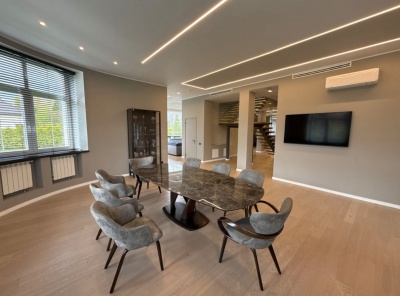 Продажа загородного дома общей площадью 2084 кв.м. Рублево-Успенское шоссе, 21 км от МКАД. Коттеджный поселок Риита. Дом построен в 2 этажа, под ключ, с мебелью. Дизайнерская отделка, уникальное планировочное решение, просторные комнаты и большие панорамные окна. Дом полностью меблирован и оснащен всей необходимой бытовой техникой от ведущих мировых производителей. Приточно-вытяжная система вентиляции с увлажнением и центральным кондиционированием Daikin. Площадь участка 43 сотки.